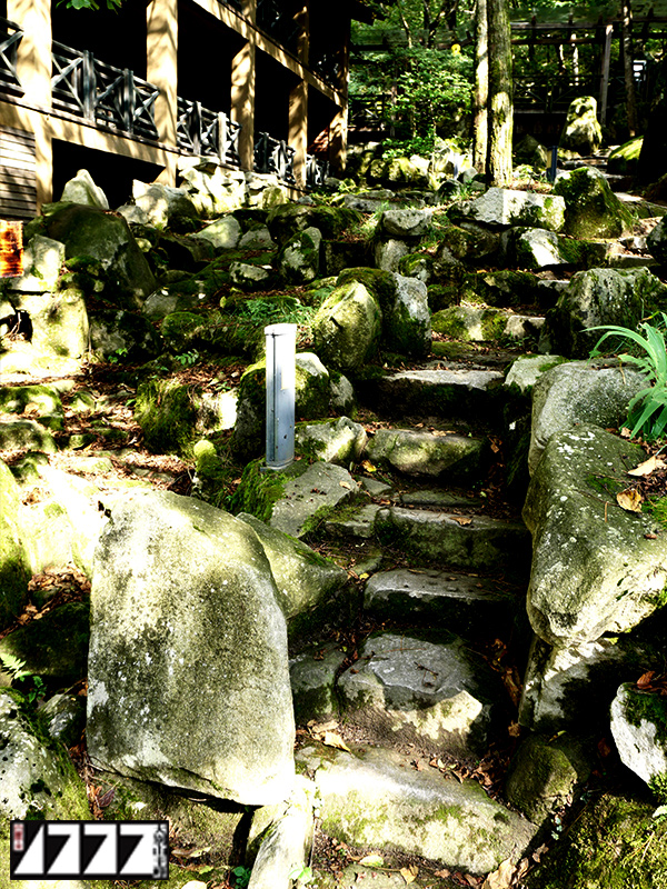 这个小屋恰似在天然小树林中长起来的,它的建筑理念完全不同于城市商务宾馆的大堂。屋顶、窗框、门把手等都是很时尚的工业建材,其他的则是天然木材和石材等,这就是代表这个时代的建筑理念,有机建筑,将现代社会的工业建材和农耕社会的天然材料相结合,以相互衬托来表现不同的材质的机理美。